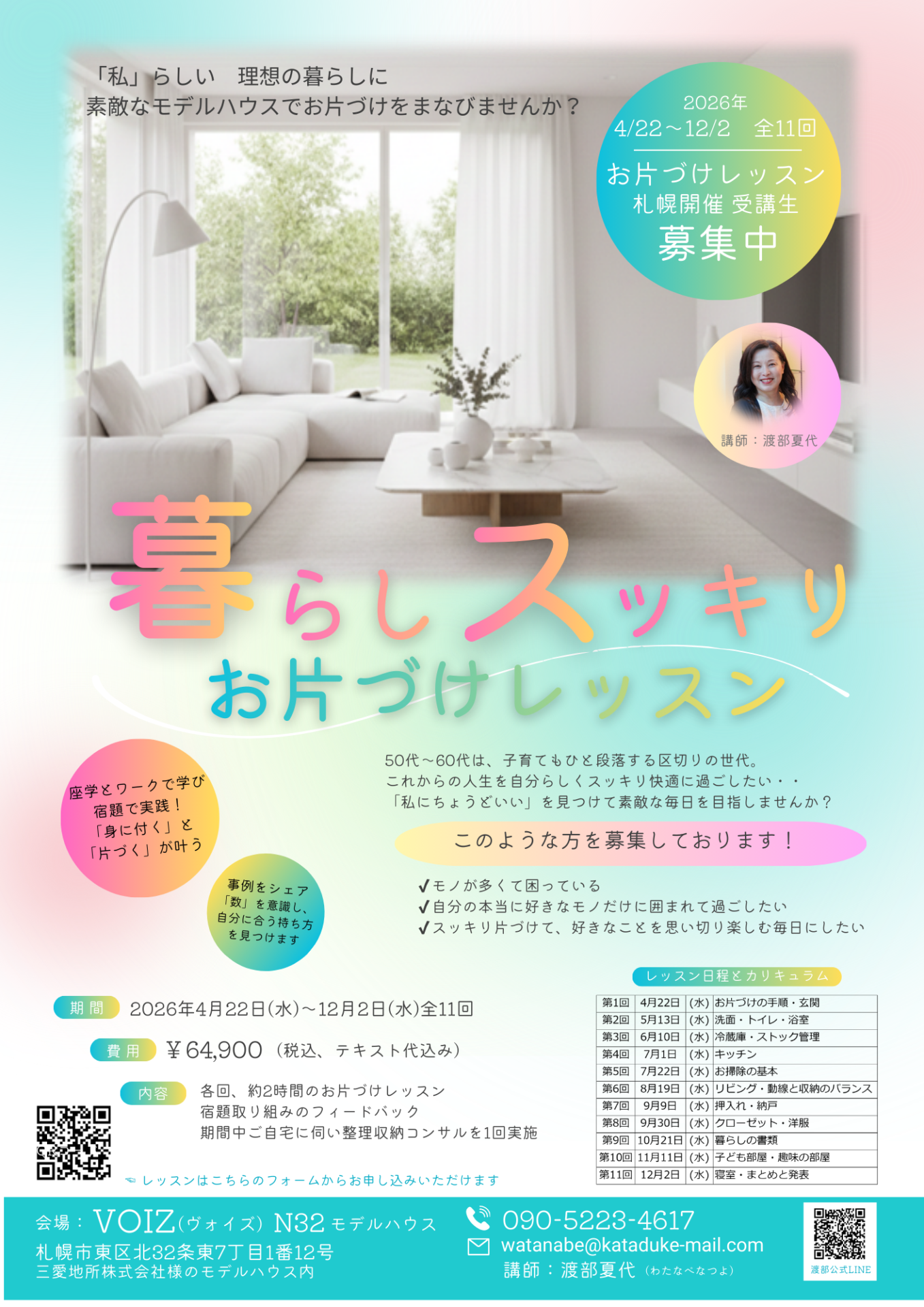 暮らしスッキリお片づけレッスン 4/22~12/2 全11回開講スタート 申込受付中
