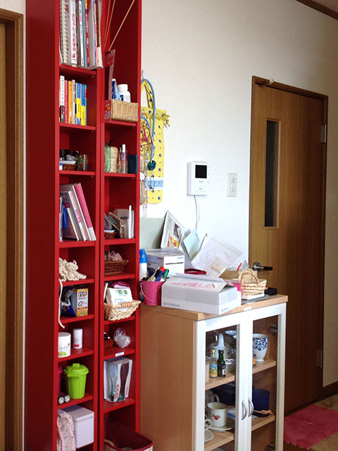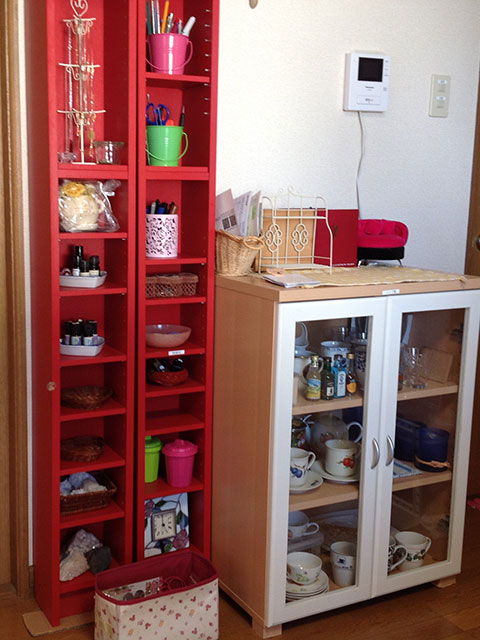 素敵な赤いディスプレイラックを整えることで綺麗に飾ることができました。