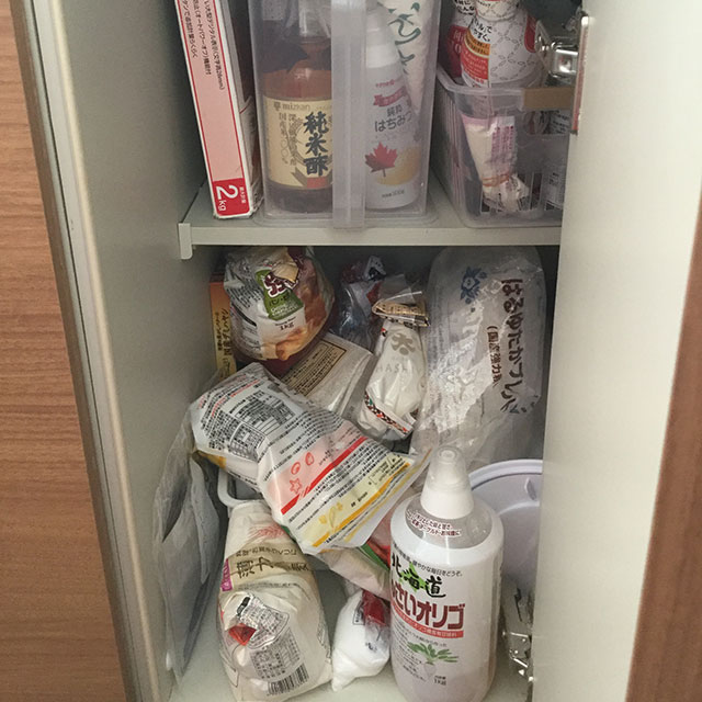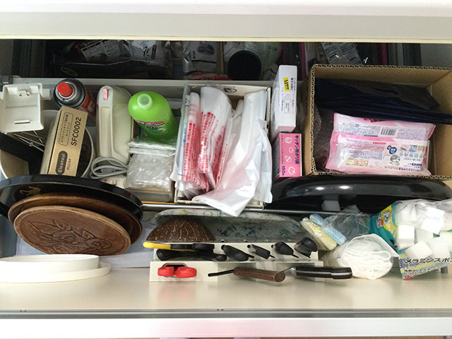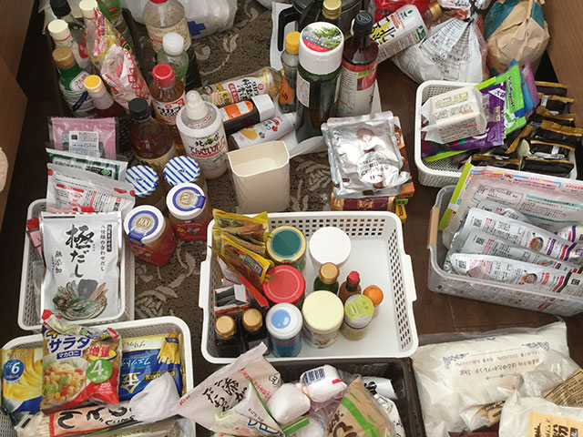 雑多になっているキッチン収納の中身を全部出して分類を行います。
