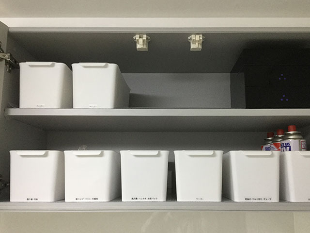 ニトリ・ダイソー・セリアの収納グッズを使ってわかりやすく収めました。
